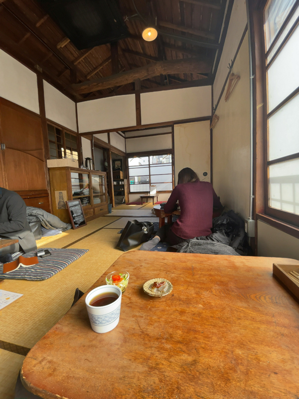 2階は畳にちゃぶ台です。畳に座ってごはんを食べるのは、すごい久しぶり。